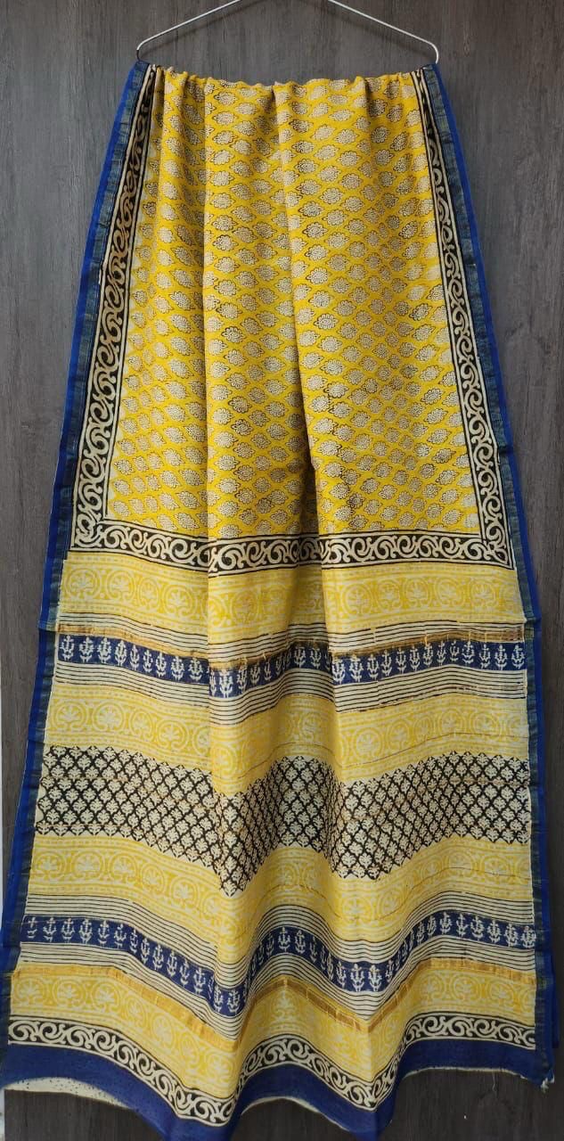 Handblock printed bagru pure chanderi sarees with blouse piece